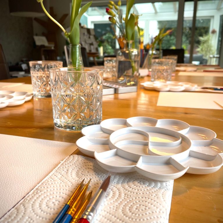Was mir privat Freude bereitet, teile ich gerne in Workshops mit euch. Ob Aquarelle, Trockenblumenkränze oder Acryl. Kunst macht einfach Spaß.
